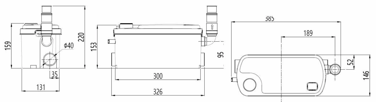 IPX7Бытовая канализационная насосная станция SANIVORT 255 M (напор 7 метров) — позволяет удалять сточные воды от раковин и душевых кабин, находящихся ниже уровня коллектора канализационной системы, а также в удаленных местах, где невозможно или нецелесообразно организовать канализацию самотеком. На верхней крышке станции имеется вентиляционное отверстие. Дополнительно КНС имеет отдельный вход с боку для приема конденсата от кондиционера. Также этот вход может использоваться для аварийного слива жидкости из КНС.