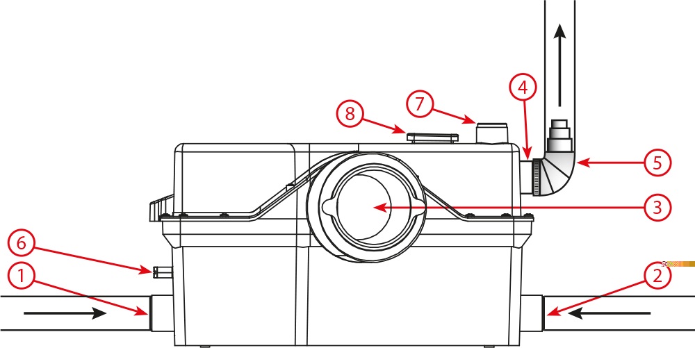 Предназначен для откачивания сточных вод и фекалий из санузла до сточной системы помещения, с возможностью подъема на высоту до 9 метров. Насос разработан для личного использования в квартирах, частных домах, коттеджах, летних домах, дачах, цокольных этажах, подвальных помещениях и т.п. Насос предназначен для подключения не более четырёх сантехнических приборов (унитаз, раковина, умывальники, биде, душевая кабина, ванна, писсуар и т.п.) .